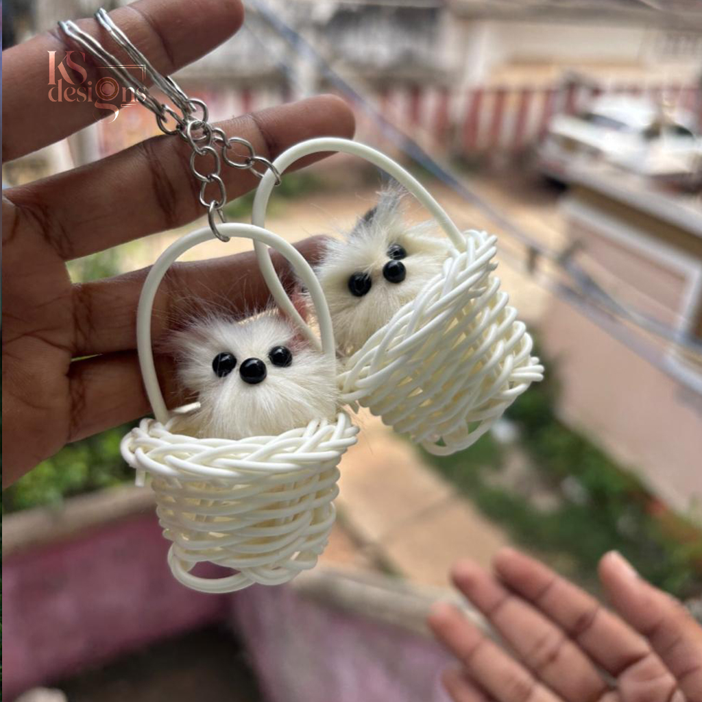 Carry cuteness everywhere with this tiny Dog Basket Keychain 🐶🧺