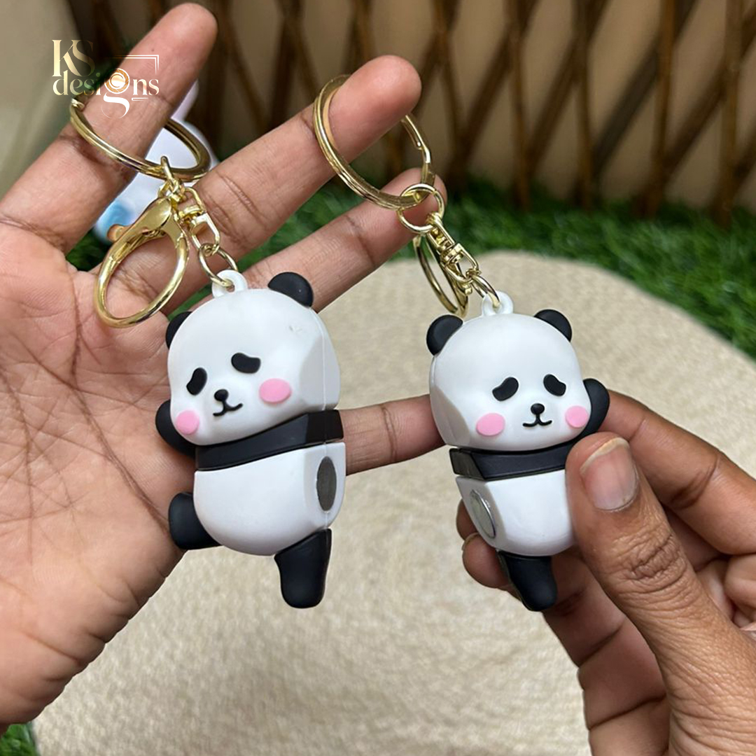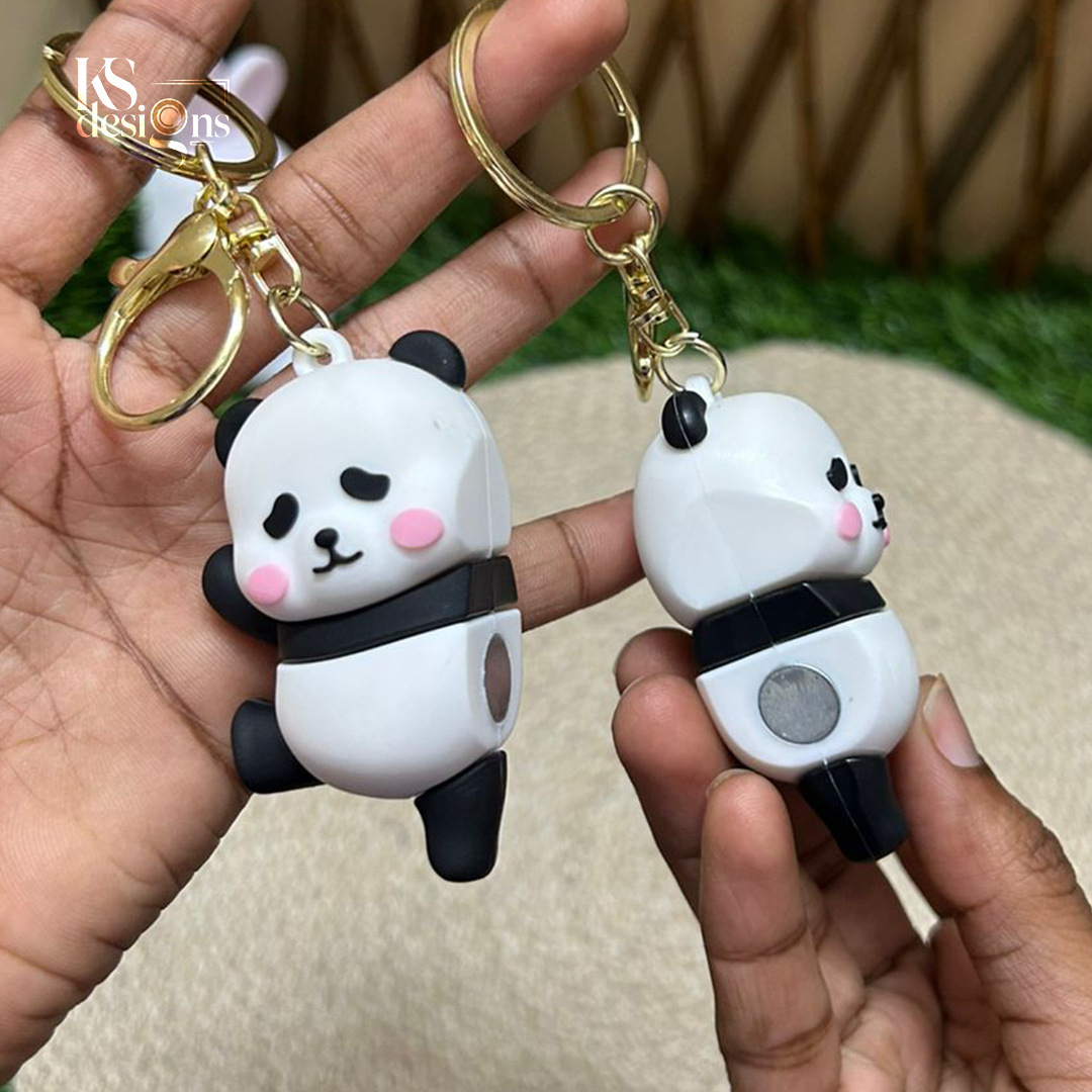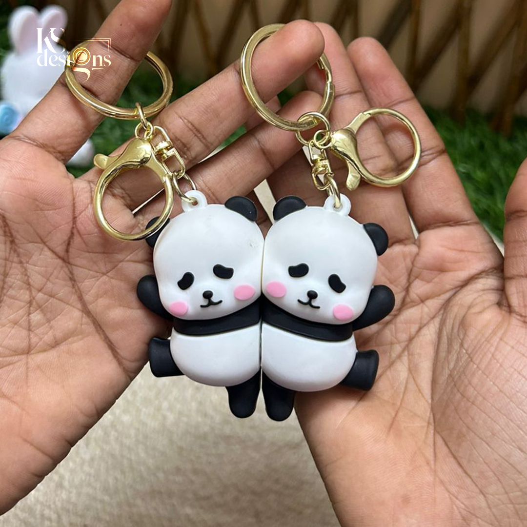 Each panda keychain is crafted using high-quality material, ensuring durability and a smooth premium finish. The soft matte look, cute facial expressions, and blush details make this keychain irresistibly charming. When kept together, the pandas connect perfectly, symbolizing love, friendship, and togetherness.