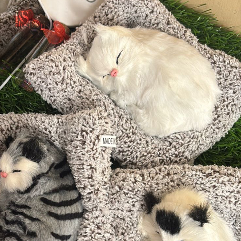 Bring home this super-cute Sleeping Cat Sound Toy, designed to look like a peacefully sleeping kitty. Made with soft, fluffy material, this toy is perfect for cuddling, decorating, and gifting.